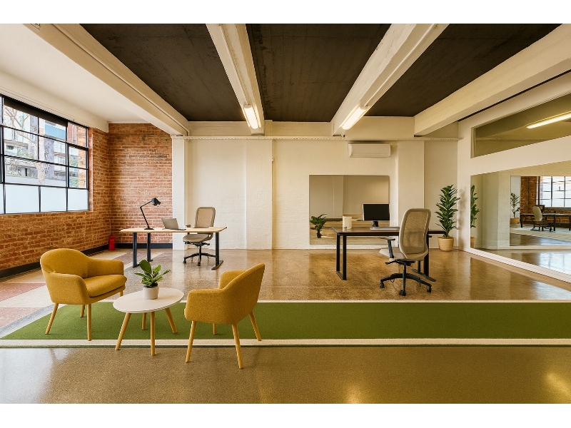 - Heritage charm: high ceilings, exposed structure, polished concrete and terrazzo floors, and a striking internal green-grass feature (tenant fit-out options available).