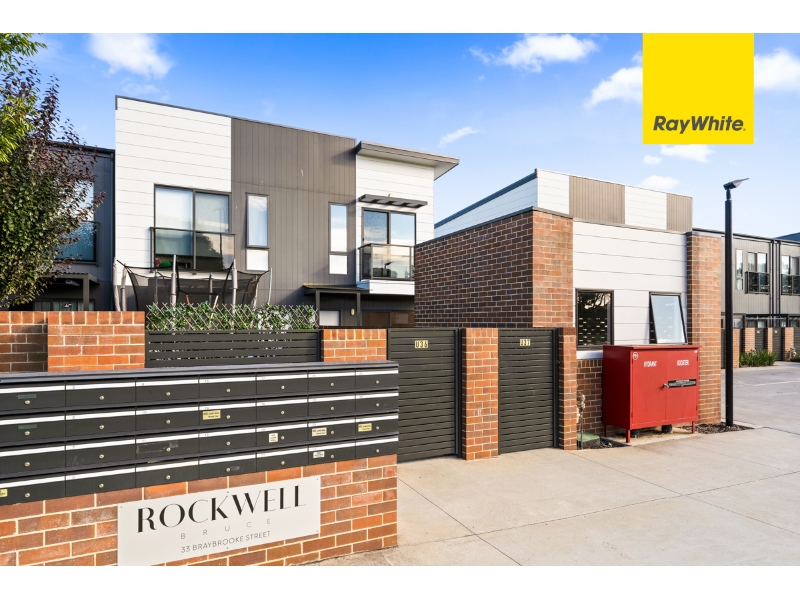 PLEASE CLICK 'BOOK INSPECTION' TO REGISTER & BE NOTIFIED OF UPCOMING INSPECTIONS This flawlessly presented three-bedroom townhouse is situated in the Rockwell complex. Architecturally designed for modern living with a dash of style, and situated in the ultra desirable location of Bruce. Spread across three levels, the home offers a superbly appointed, functional layout, perfectly created for relaxed living and entertaining. The ground level is dedicated to a sunlit open-plan living space that opens to the front courtyard, which offers street access. The adjoining designer kitchen boasts a gas cooktop, integrated dishwasher, a built-in microwave, soft-close drawers and stone benchtops. Completing the lower level is the thoughtfully segregated main bedroom with its own ensuite and built-in robe for streamlined storage. The upper level comprises two large bedrooms. The 2nd main bedroom has immediate access to a 2-way bathroom & a Juliet balcony, and built-in robes to both bedrooms. Ducted reverse cycle heating/cooling throughout & double-glazed windows and sliding doors provide a home of year-round comfort and energy efficiency. On the lower level is the double tandem lock-up garage with additional under-stair storage, along with the laundry space. The Rockwell complex is known for its quality and convenience, making it a popular choice for tenants seeking both lifestyle and location. Ideally situated within walking distance to the University of Canberra, Belconnen Town Centre, Calvary Hospital, and GIO Stadium, you'll enjoy easy access to work, study, shopping, and entertainment. Leave the car at home and enjoy the ultimate in low-maintenance living. Features of the property include; 3-Bedroom townhouse split over three levels Open plan living area opening to the courtyard, with street access Designer kitchen, well equipped with gas cooktop, an integrated dishwasher, a built-in microwave and stone benchtops Downstairs Master with an ensuite & built in robe Other bedrooms both with built-in robes 2-way bathroom upstairs Ducted reverse cycle heating/cooling throughout Double-glazed windows and sliding doors Private two-car tandem garage with internal access and under-stair storage Prime Bruce location Available: 13th April 2026 PETS: The tenant/s must seek landlord consent to keep pets at this property. ENERGY EFFICIENCY RATING: There is no current energy efficiency rating for this property. MINIMUM STANDARDS: The property meets the minimum housing standards for insulation. VITAL INFORMATION: The property is unfurnished Please note that we request no videos or photos be taken inside occupied properties Please note you may be required to remove your shoes prior to inspecting the property WISH TO INSPECT: 1. Click on "BOOK INSPECTION" if this listing does not have the "BOOK INSPECTION" button please go to raywhitecanberra.com.au website and register 2. Register to join an existing inspection, if no time is offered or if the time does not suit, please register and we will contact you once access is arranged 3. If you do not register, we cannot notify you of any time changes, cancellations or further inspection times RENT INFORMATION: 1. Rent is collected fortnightly unless otherwise nominated for a longer period 2. Bond required is equal to 4 weeks rent DISCLAIMER: All information regarding this property is from sources we believe to be accurate, however we cannot guarantee its accuracy. Interested persons should make and rely on their own enquiries in relation to inclusions, figures, measurements, dimensions, layout, furniture and descriptions.