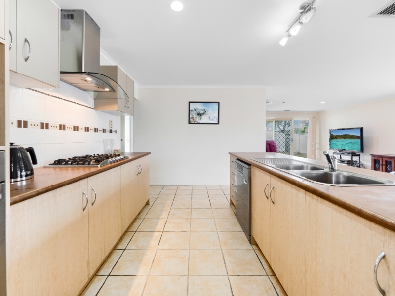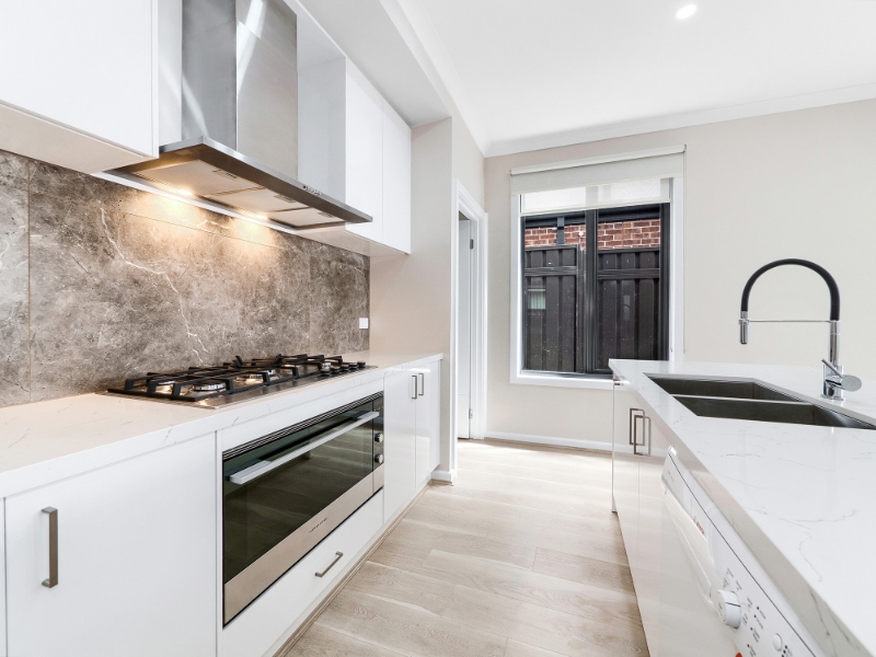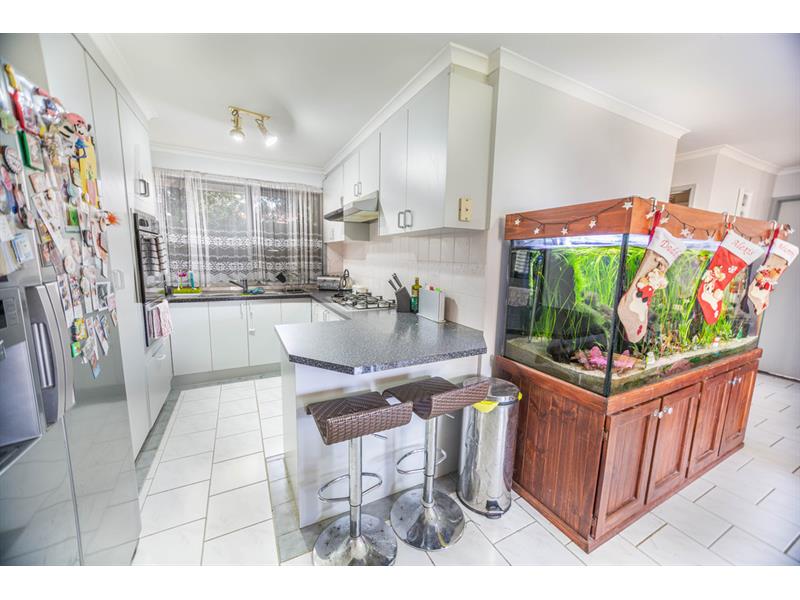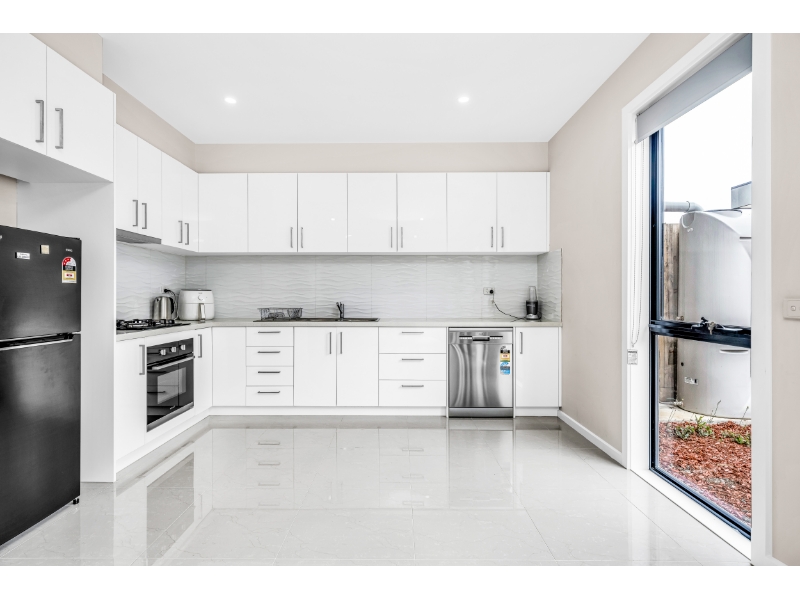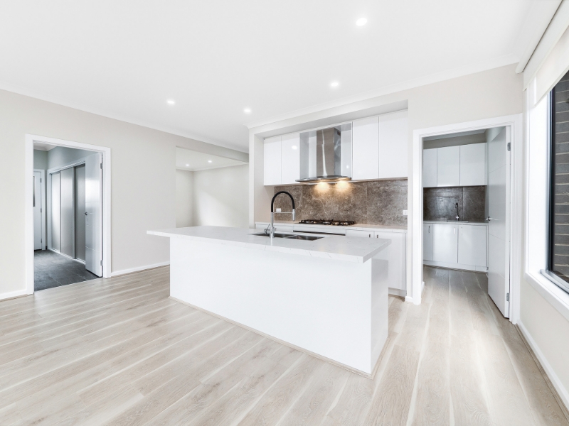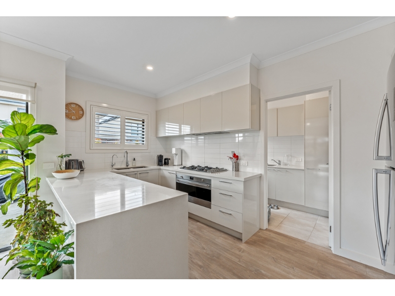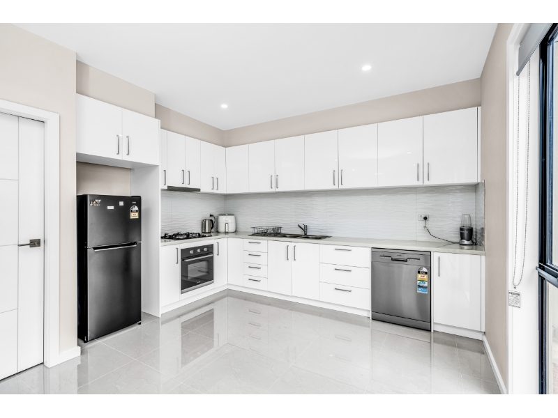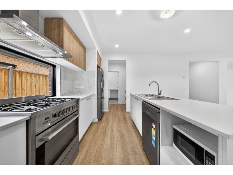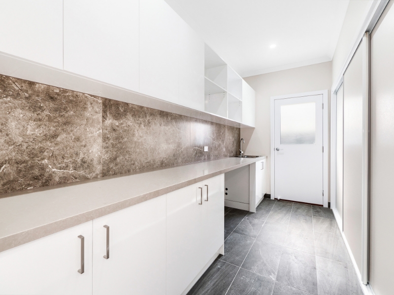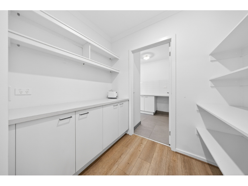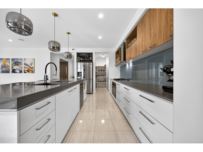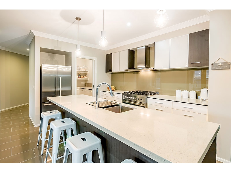 - Modern kitchen features stone benchtops and a dedicated meal prep area.
