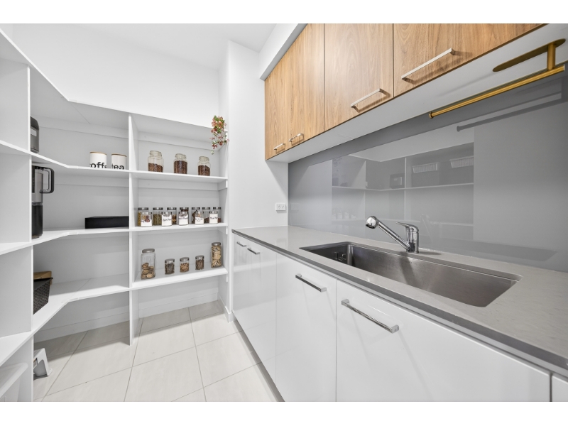 - A large walk-in butler's pantry with a hidden second sink and extra shelving.