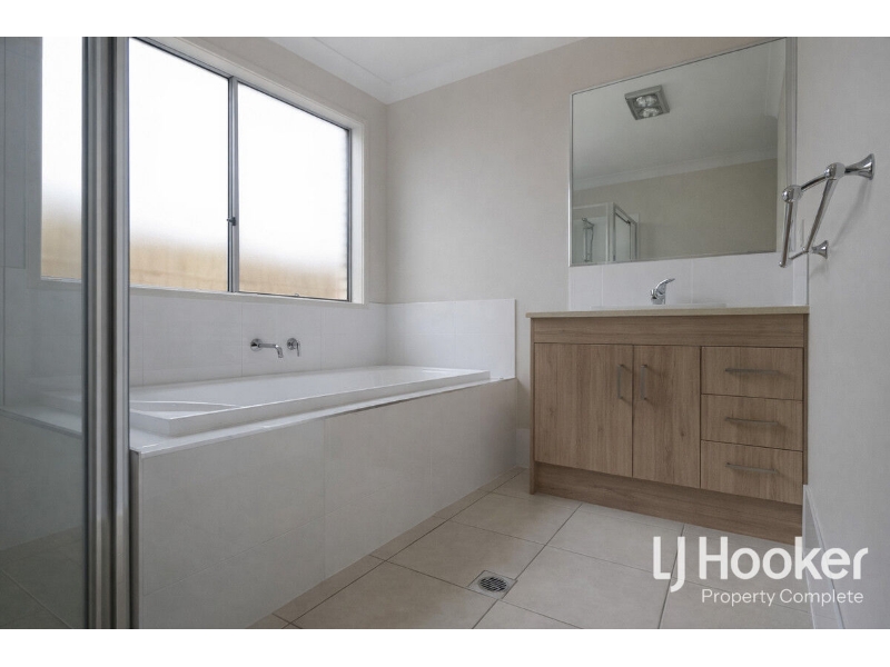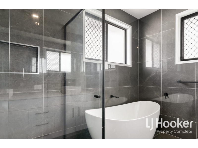 The home includes multiple well-sized bedrooms, each offering built-in storage, ceiling fans, and neutral finishes. The main bathroom is modern and stylish, with a separate shower and bath, while the ensuite features contemporary fittings and a clean, minimalist design.